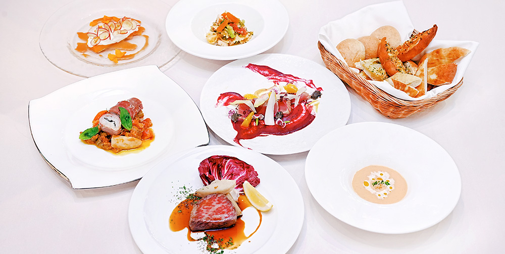 豊かな自然と 生産者のこだわりが生み出す那須の食材の数々旬の野菜・果物 フレッシュな乳製品・卵牧場直送の和牛をシェフ自ら厳選し季節ごとに旬の味覚をお楽しみいただけるお料理をご用意します生産者の顔が見える安心の食材から自然の恵みをいただき美味しさを最大限に引き出す調理法でコース料理に仕立てる那須ロイヤルキュイジーヌ