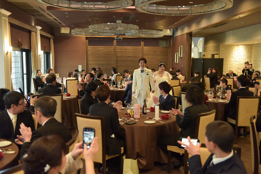 余興はせずに、テーブルへラウンドして、みんなと触れ合えるように。