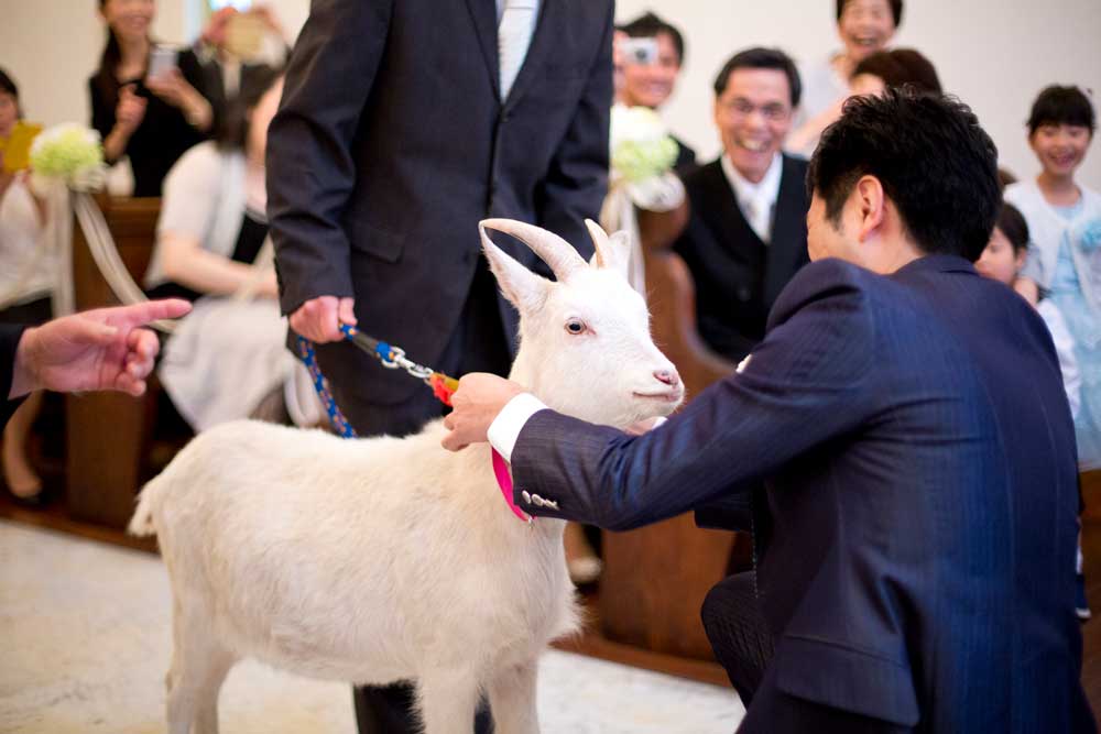 ブートニアをリングベアラーのヤギさんに食べられちゃった。